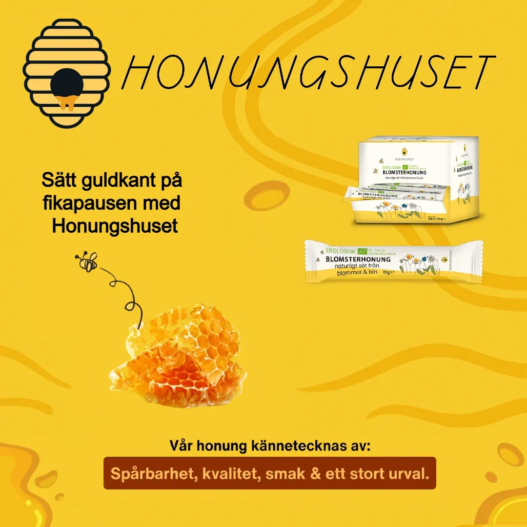 När du behöver en smidig portionsförpackning av honung så har vi lösningen. Honungshusets portionsförpackning på 15 g Ekologisk honung i sticks passar utmärkt i yoghurten, gröten, téet eller varför inte som pålägg på smörgåsen. Honungssticks är också perfekta att ta med på långturen i löpspåret eller cykelturen för att fylla på sockerdepåerna på ett hälsosamt och skonsamt sätt.